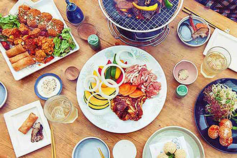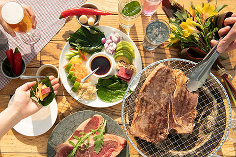 スパイスの効いたアジアンテイストの創作バーベキューは、お肉だけでなく野菜もたっぷり楽しめる3つのコースをご用意。炭火でじっくりと焼き上げる本格的なコースだけでなく、アラカルトメニューも豊富に揃い、連日多くのお客様が訪れ大好評!