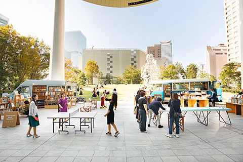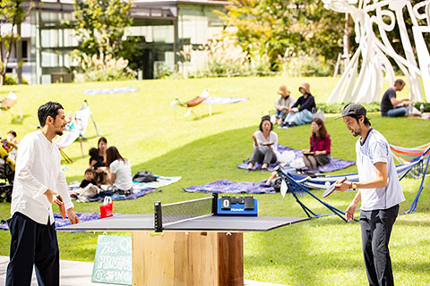 芝生のオーバル広場にはハンモックや卓球台が登場し、ピクニックシートの貸し出しも。秋晴れのもと、思いおもいに屋外ランチをお楽しみいただきました。