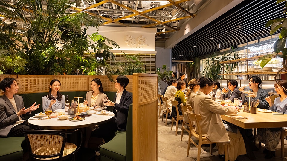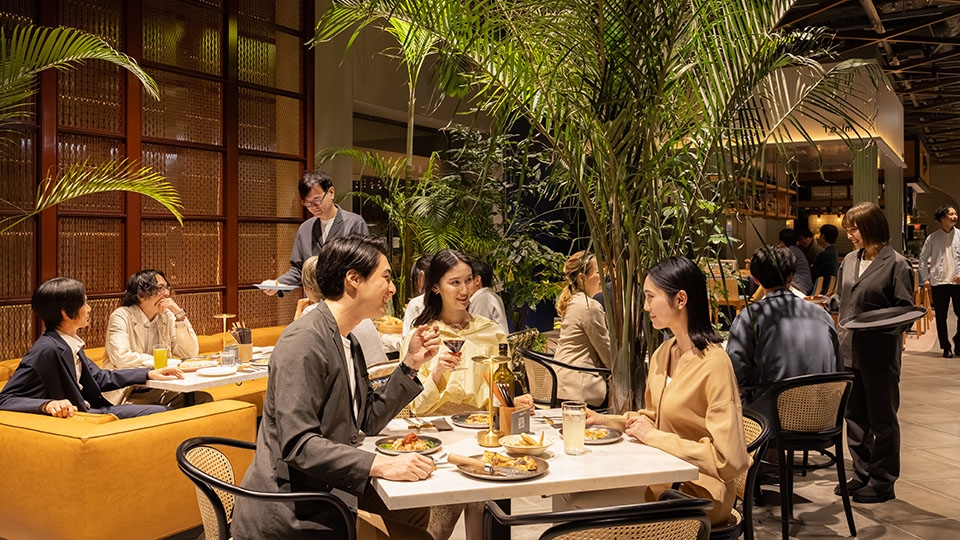 テーブル席、ソファ席、ロングテーブル、円卓など時間帯やシーンによって、多様な過ごし方をお楽しみいただけます。