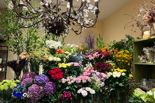 お客さまひとりひとりの生活と用途に合わせたお花を提案するフラワーショップ。季節のお花やグリーンの他にも、プリザーブドフラワーや花器、雑貨もご用意します。