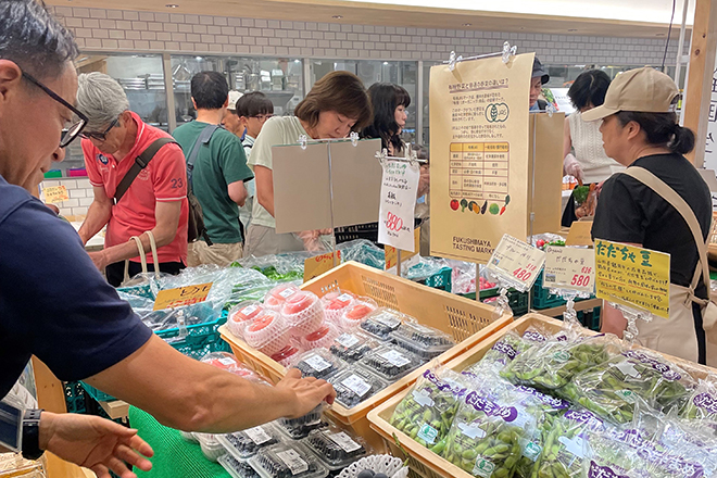 福島屋虎ノ門店では、オーガニックを中心としたこだわりの農産物専門問屋「温市(ぬくもりいち)」と提携しています。毎日新鮮な地場野菜を中心に、週末は朝採りのお野菜を並べた産直マルシェを開催しております。旬の美味しいお野菜・果物の食べ方のポイントや保存方法などをお伝えしながら、採れたてをご提供します。