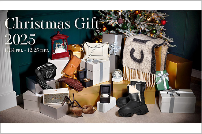 クリスマスを彩る特別なギフト。ホリデー気分を盛り上げるファッション小物や、大切なひとに贈りたいアイテムが揃います。