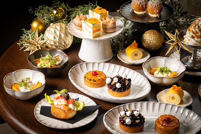 フェスティブシーズンを華やかに彩るアフタヌーンティーをご提供いたします。栗、カシス、蜜柑を使ったパティシエ特製のスイーツに、黒トリュフ香るクロケット、タラバガニとキャビアの特製ロールなど、旬の食材を織り込んだミシュランスターシェフ監修のカフェならではのセイボリーで、優雅な午後のひとときをお過ごしください。