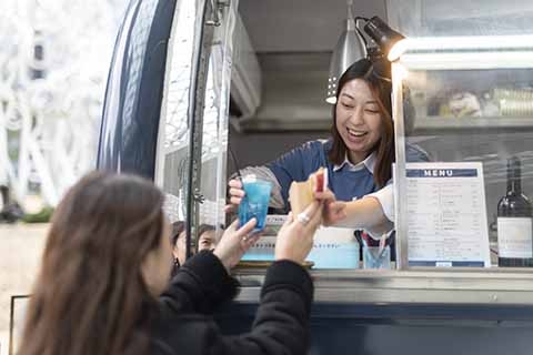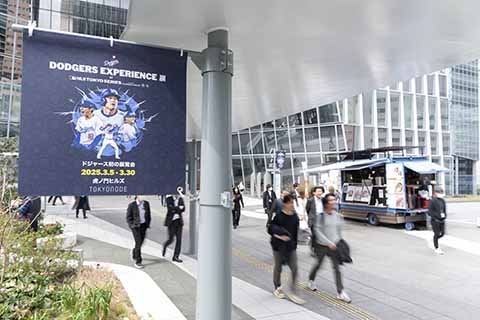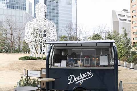 ステーションタワー45階 TOKYO NODEでの「DODGERS EXPERIENCE展」の開催を記念し、虎ノ門ヒルズにドジャースカラーのブルーを纏ったキッチンカーが登場しました。