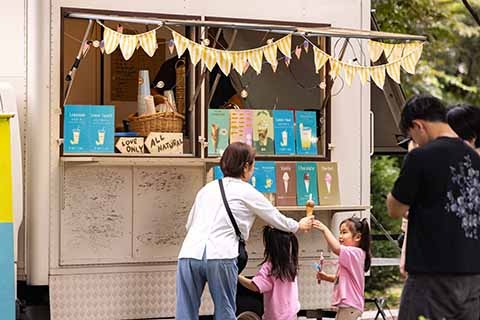 オーバル広場では、オリジナルピクニックボックスや、キッチントレーラー、誰でも気軽に楽しめるニュースポーツが登場しました。