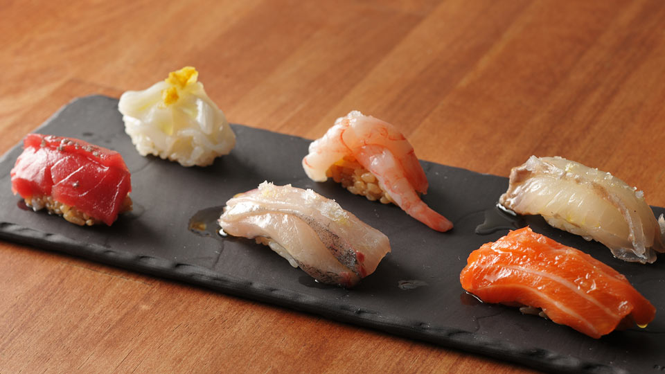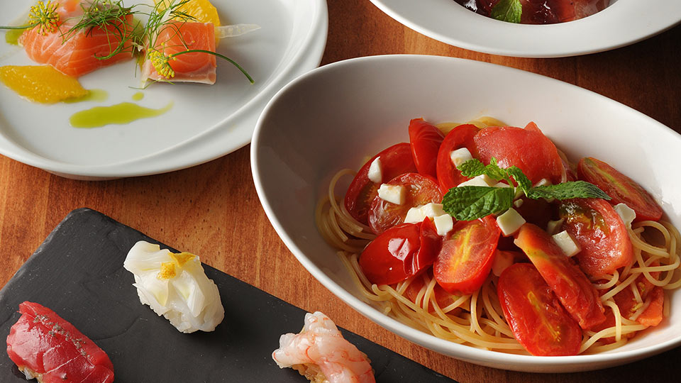 山形県庄内浜の魚介をメインとした四季折々な食材が、奥田イタリアンで輝きだします。新感覚のイタリアン&オイル寿し店イル・フリージオを、山形県鶴岡市で営んでいたオーナーシェフの奥田政行氏。このたび舞台を虎ノ門に移し、日本の魚たちを多彩な食材と共に、30種類のオリーブオイルや100種を超える世界の塩を使い分けて、奥田ワールドを繰り広げます。鮮魚や珍魚、四季折々の食材を種類・調理法によって使い分け、食材の香りや旨味を相性で最大限に活かす奥田シェフの醍醐味をお楽しみください。