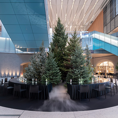 虎ノ門ヒルズ ステーションタワーB2Fのステーションアトリウムでは、「食」をテーマに新たな感覚体験を生み出すアーティスト・諏訪綾子氏が初めて手掛けるクリスマスインスタレーションを展開します。